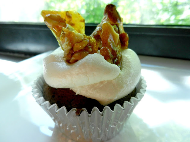 So I made the cupcakes, topped with frosting and instead of what her topping was exactly I switched it up a bit to make it a tad less messy for me. I made caramel candied nuts.